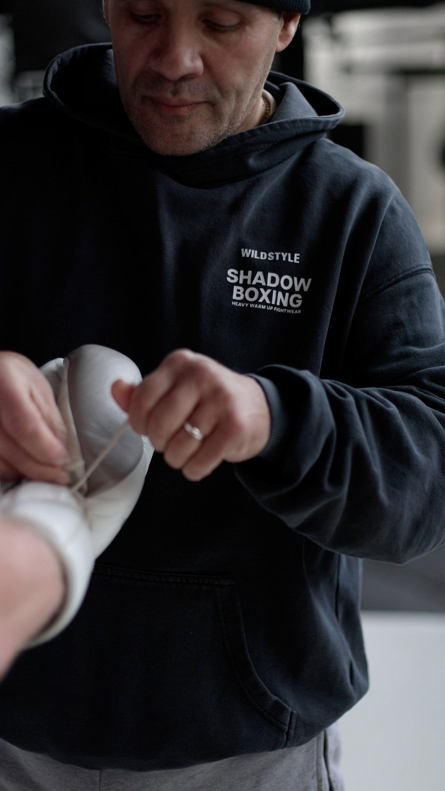 A tribute to the solitary discipline of the fighter's preparation. The SHADOW BOXING Hoodie is designed for the essential warm-up routine, offering a substantial, structured silhouette that moves with purpose. Double-layered hood Front kangaroo pocket Durable twin needle stitching Tightknit...